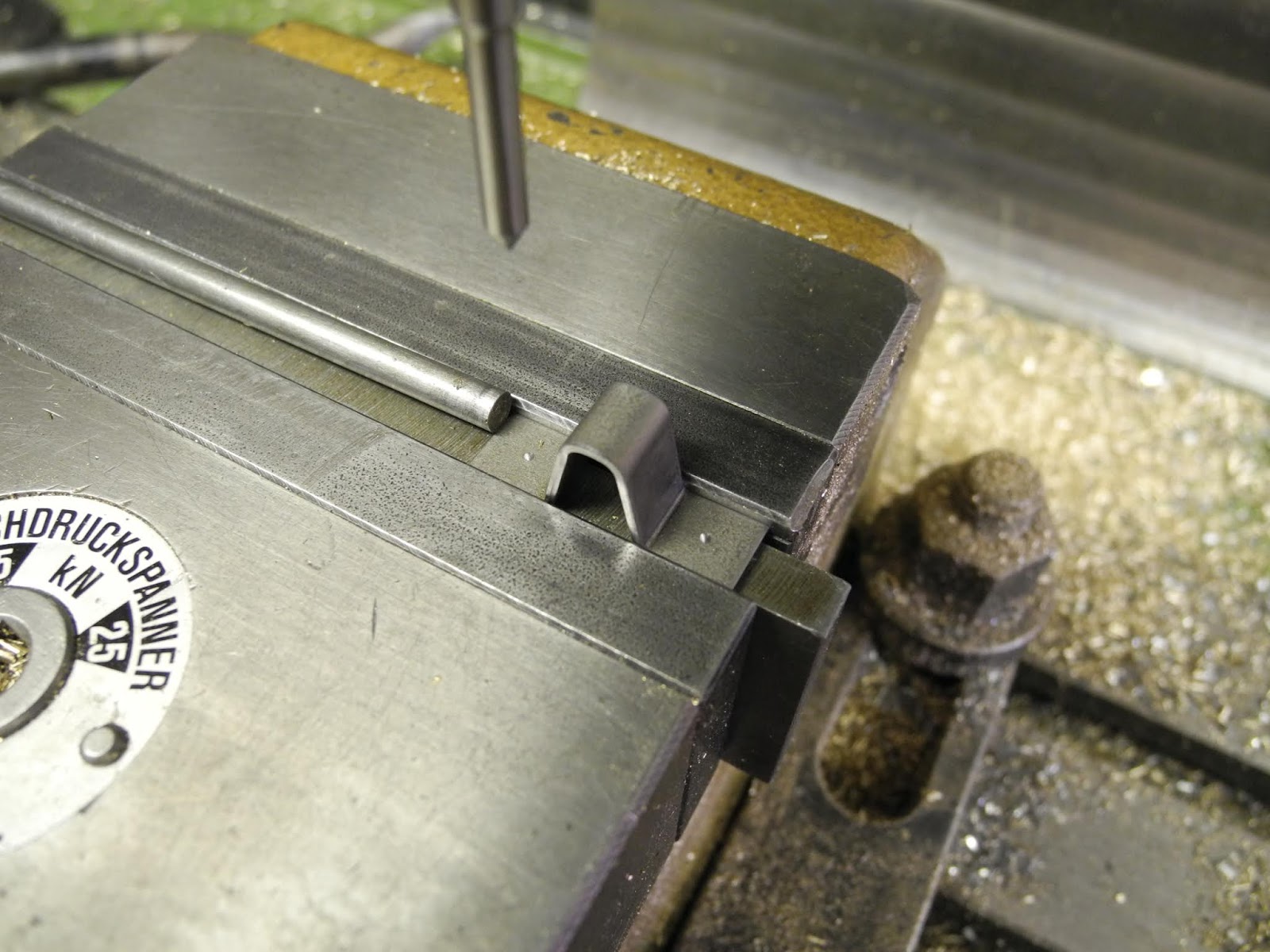 To bend these stops, a small bending punch was milled from brass.